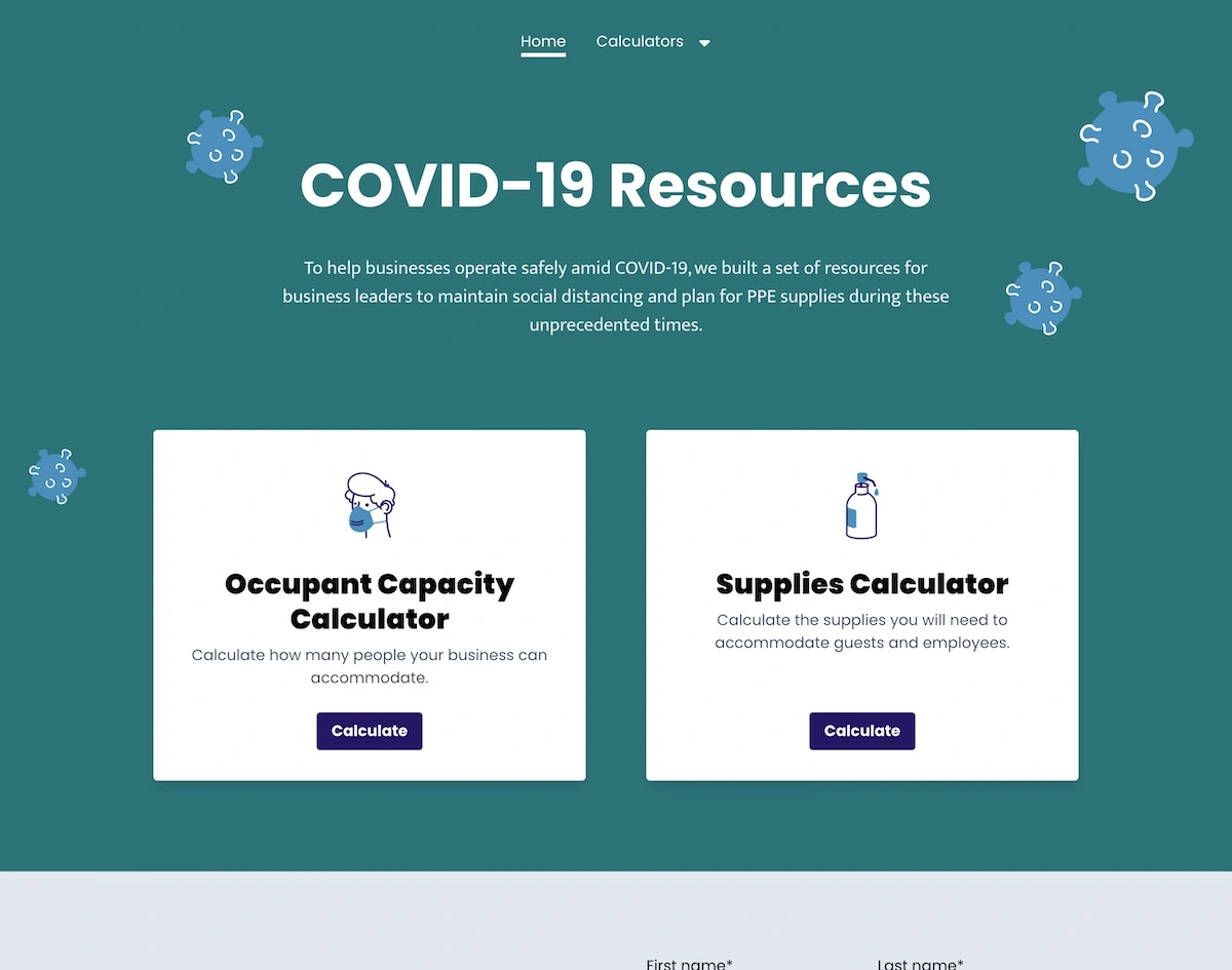 A web tool to help business owners calculate both supplies and the maximum number of occupants they can allow.
