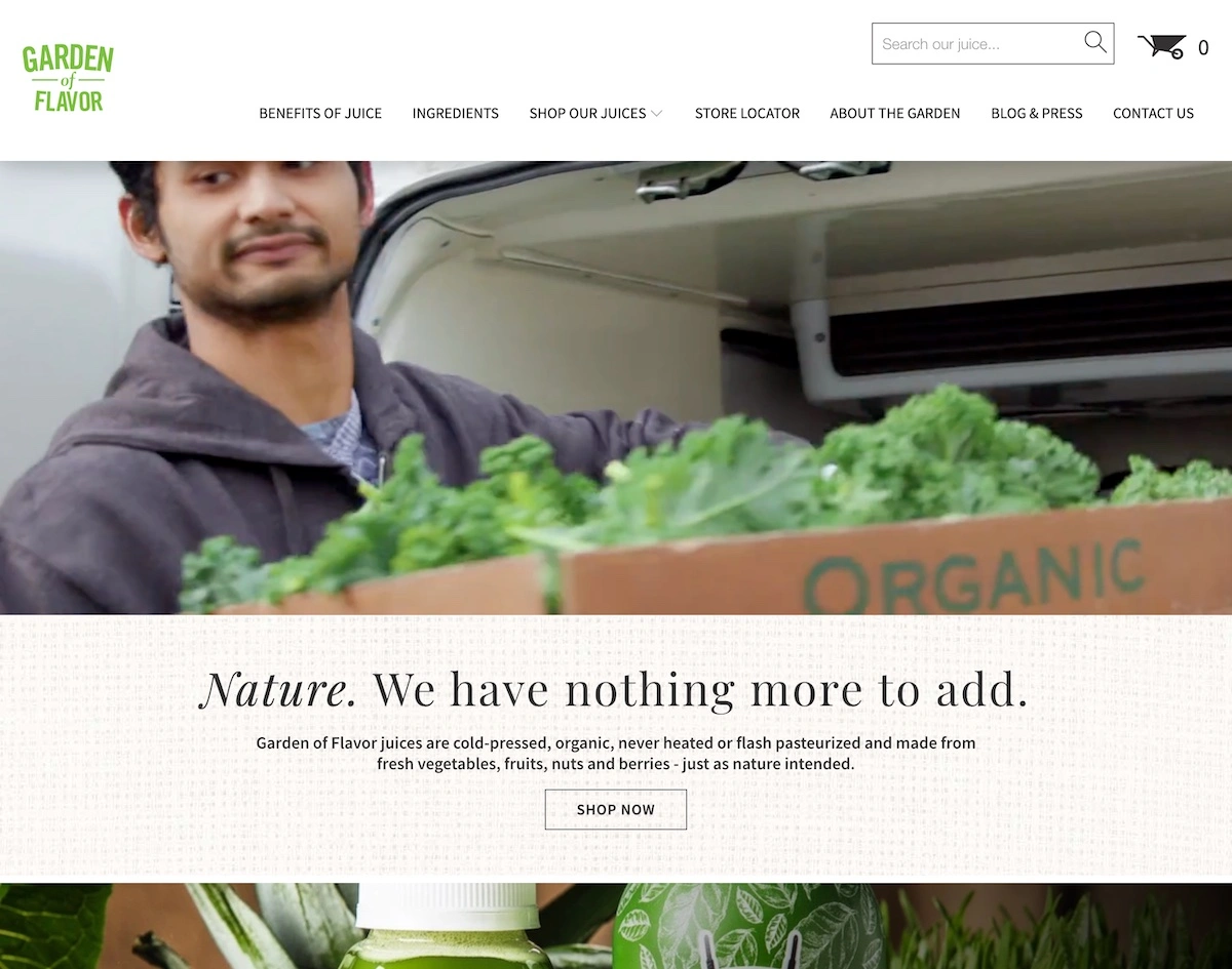 An e-commerce website for a Cleveland-based nature-first juice company.