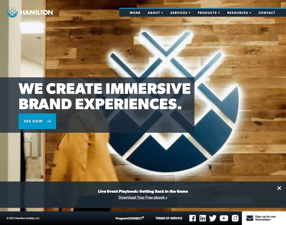 A website highlighting Hamilton Exhibits innovative brand spaces and how they can make an impact.