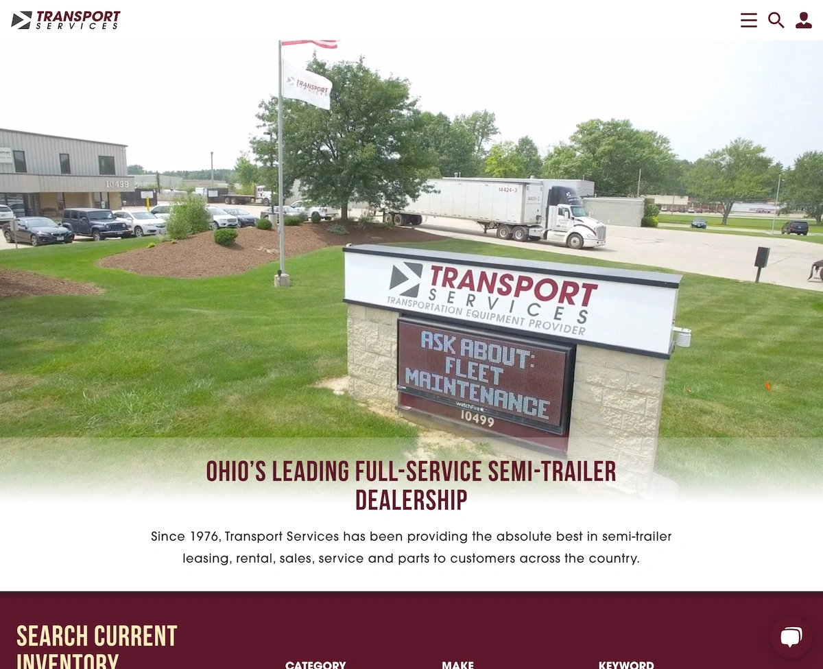 A marketing website for a Cleveland-based full-service semi-trailer dealership.